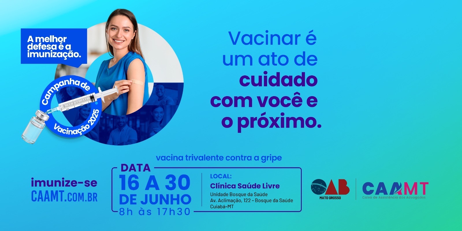 Imunização segue disponível na capital até 30 de junho para advogados(as), estagiários(as) adimplentes e seus familiares A Caixa de Assistência dos Advogados de Mato Grosso